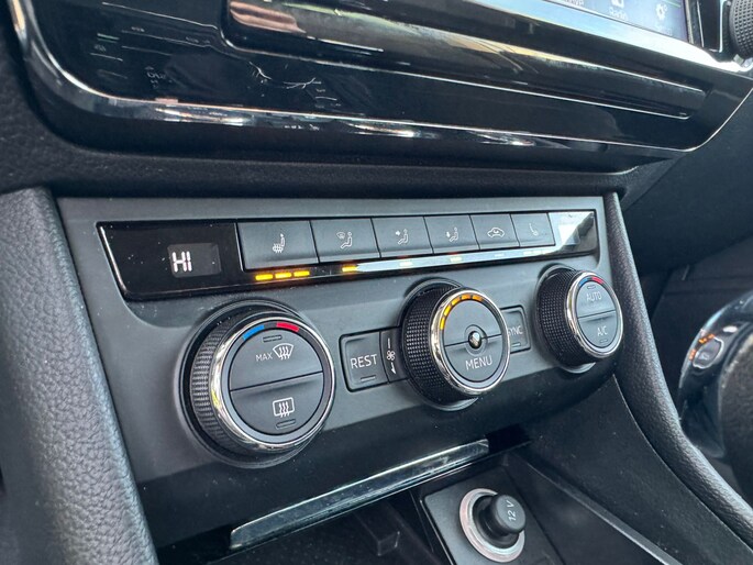 Met een gerust hart achteruitrijden? Dat kan, dankzij de achteruitrijcamera. De auto is voorzien van een trekhaak en is een uitstekende caravantrekker. Het audio-installatiesysteem met DAB-ontvangst en het navigatiesysteem met harde schijf bedient u veilig met knoppen op het stuur. Met automatische airconditioning hoeft u alleen de gewenste temperatuur in te stellen. Het systeem doet de rest. De elektronische systemen in deze ŠKODA helpen u actief om comfortabeler te rijden. Een automatisch inschakelbare verlichting en een regensensor houden de omstandigheden onderweg in de gaten. U bent in deze ŠKODA ook voorzien van WIFI-hotspot, cruise control, keyless entry, dvd-systeem, automatisch dimmende buitenspiegels en lederen stuur.
