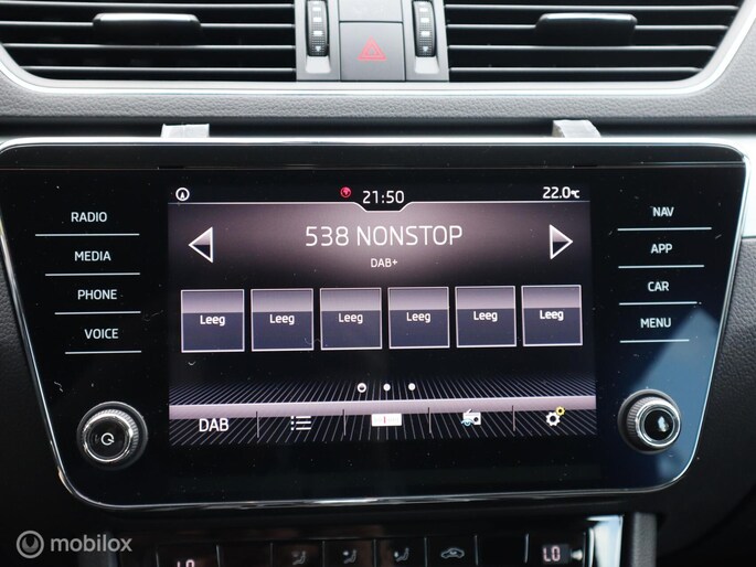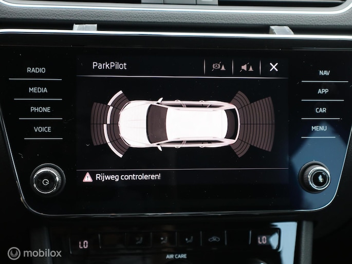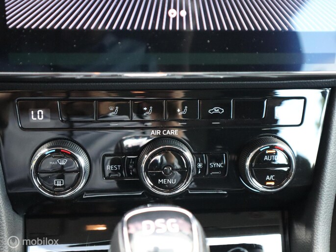 Niets achter deze auto blijft verborgen door de achteruitrijcamera. Een veilig gevoel! Wat is de onderhoudsstatus van deze auto? U checkt het snel, simpel en overal via uw smartphone. Het audio-installatiesysteem met DAB-ontvangst en het navigatiesysteem met harde schijf bedient u veilig met knoppen op het stuur. Door de draadloze oplaadmogelijkheid voor telefoons bent u verlost van kabels en snoertjes. Het opladen gaat simpel door de smartphone in de speciale houder te plaatsen. De achteropkomend verkeer waarschuwing bewaakt de afstand tot achterliggers en geeft een signaal als er te weinig ruimte is. Met automatische airconditioning, sportstuur met schakelpaddels, regensensor, cruise control, keyless entry en dvd-systeem is deze Skoda helemaal compleet.