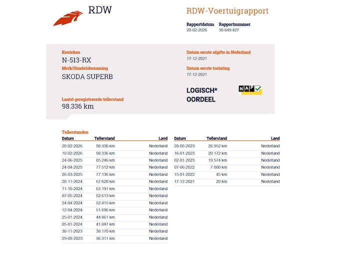 Kilometerstand gecontroleerd