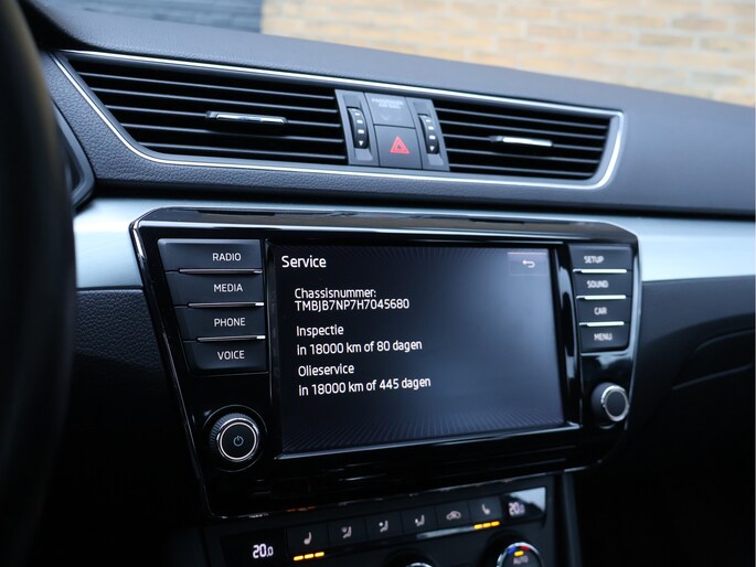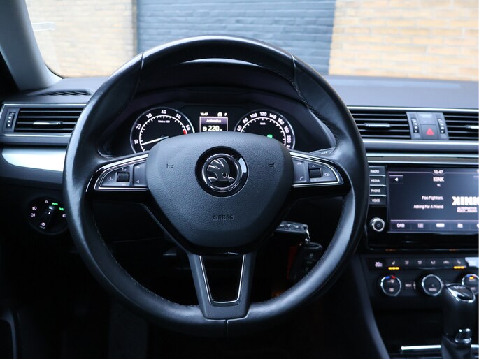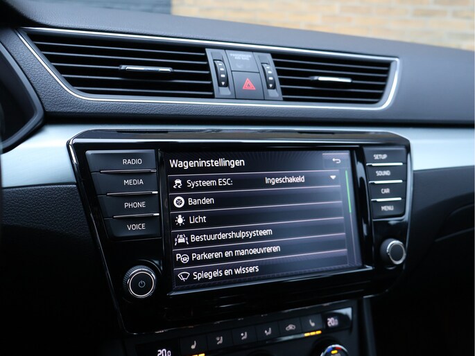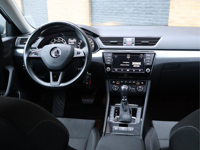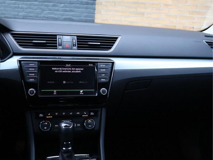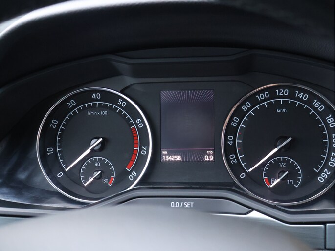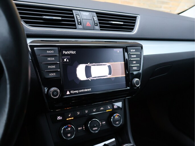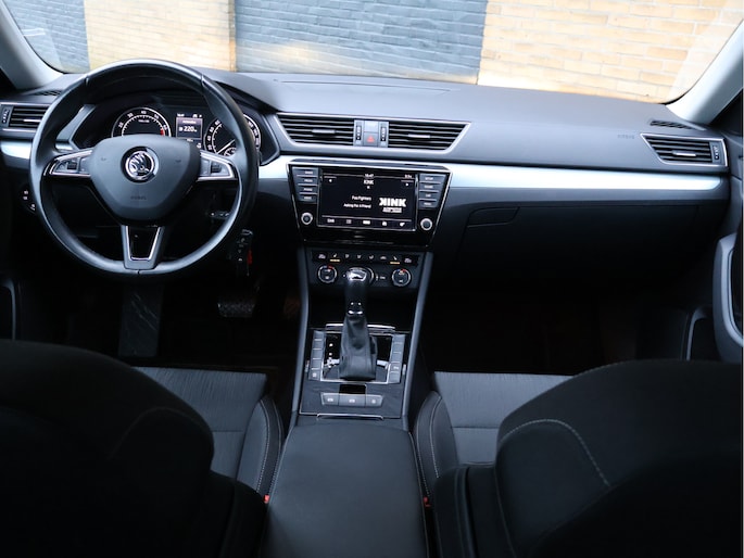 Op technologisch vlak is deze Superb zeer compleet uitgerust met parkeersensoren vóór en achter, cruise control met snelheidsbegrenzer, Front Assist met noodremfunctie, vermoeidheidsherkenning, bandenspanningscontrole en een zelfdimmende binnenspiegel. De licht- en regensensor, LED-achterlichten, mistlampen met bochtenverlichting en coming-home verlichting verhogen zowel comfort als veiligheid.