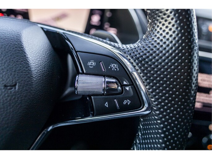 Via het digitale dashboard bent u permanent op de hoogte van alle informatie die u nodig heeft voor een veilige rit. De vier camera's die samen de 360 graden camera vormen, bieden u de mogelijkheid om obstakels in elke richting te zien. Adaptive cruise control houdt de ingestelde snelheid vast en houdt afstand tot het voertuig voor u. De ingebouwde file assistent is een echte helper als het vaststaat onderweg. Het systeem meet ruimte tot de auto vóór u permanent en activeert zelfs de remmen als uw voorligger stopt. De elektrisch inklapbare trekhaak maakt een einde aan ingewikkelde handelingen. Met dashboard met spraakbediening, connected drive services, full map navigatiesysteem, WIFI-hotspot, achteropkomend verkeer waarschuwing en automatische airconditioning is deze ŠKODA helemaal compleet.