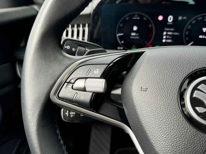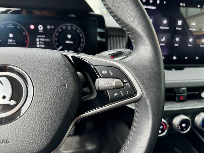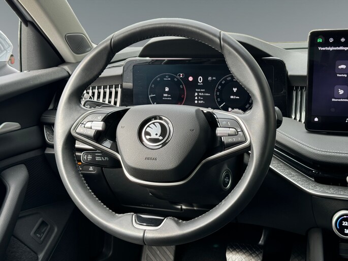 Het digitale dashboard zorgt voor een super functionele display van reisinformatie. Met de 360 graden camera kunt u elk detail rond de auto zien, waardoor mogelijke schade door verkeerd inschatten van afstanden vermeden wordt. Als u de adaptive cruise control inschakelt, regelt de auto zelf de snelheid en de afstand tot de auto voor u. De file assistent verzacht het fileleed door automatisch veilig afstand te houden tot de voorligger en zo nodig zelfs te stoppen als de rij tot stilstand komt. Spraakbediening verhoogt de veiligheid en het gebruiksgemak. De auto luistert naar uw instructies en volgt ze op. De uitrusting van deze ŠKODA is met connected drive services, navigatiesysteem, achteropkomend verkeer waarschuwing, kruisend verkeer detectie, automatische airconditioning en schakelpaddles aan het stuur behoorlijk compleet.