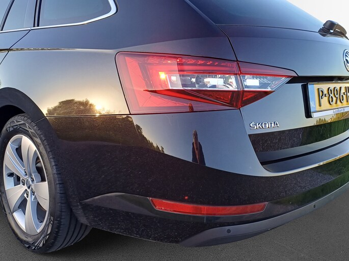 Rijden als nieuw? Dan is deze ŠKODA Superb Combi een fantastische buitenkans. Prille cijfers op de teller, piepjong ogend, verbluffend actueel in extra's en opties... Deze ŠKODA Superb Combi heeft het allemaal! Hij heeft een benzinemotor en een handgeschakelde zesversnellingsbak. Ga samen met uw bijrijder lekker zitten in de verwarmbare voorstoelen. Elke rit de perfecte zit met de heerlijke comfortstoelen. De achterklep opent automatisch met een druk op de knop. Handig als u met volle handen staat. Dankzij de xenonverlichting profiteert u in het donker van een krachtige en heldere lichtbundel. In deze ŠKODA profiteert u onder andere ook van: 17 inch lichtmetalen velgen, sportonderstel, donker getint glas achter, in delen neerklapbare achterbank, LED-achterlichten en verstelbare lendensteunen.
