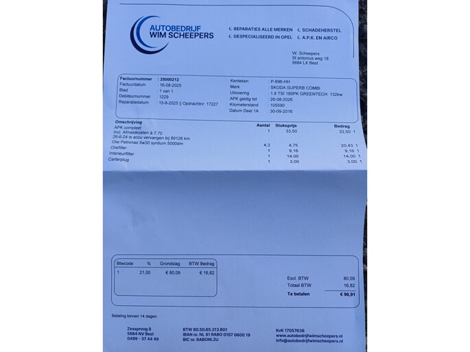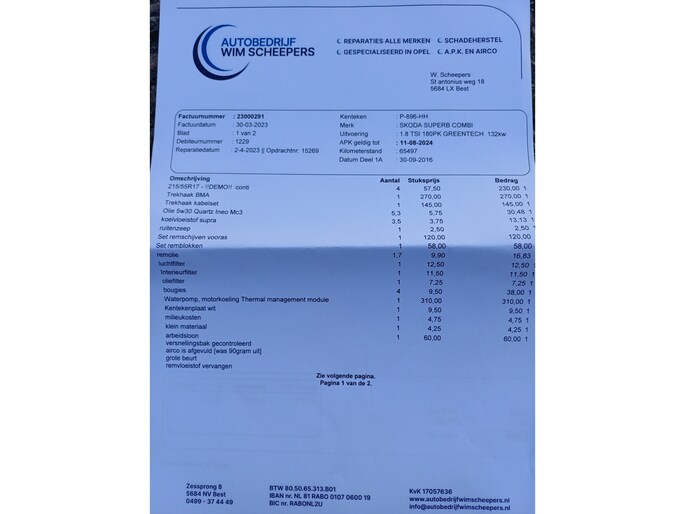 | Wegenbelasting/3mnd | € 226 - € 247 |