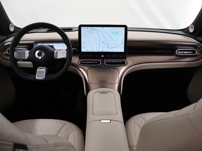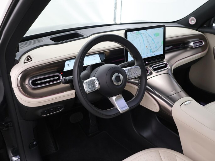 Valt u voor de styling van deze smart #1? Of gaat u voor de slimme techniek? Wat u ook kiest, u krijgt altijd een auto met een volledig elektrische aandrijflijn. Gas geven is er met de elektromotor niet meer bij. Stil snelheid maken wel! Deze auto is bijna nieuw, ondanks dat hij uit 2025 komt; hij heeft slechts 5682 kilometer afgelegd. Kijk, dat noemen we nou stijlvol: een fraai lederen interieur. Gecombineerd met het heerlijke gemak van de elektrisch bedienbare achterklep. Deze smart #1 heeft verwarmbare voorstoelen, voor zowel bestuurder als bijrijder. Licht en luchtpartijen: u krijgt ze bijgeleverd dankzij het glazen panoramadak. Het verwarmbare stuurwiel is een teken van ultieme luxe. Deze voorziening is een topklasse auto waardig. De geavanceerde matrix LED-verlichting in de koplampen levert maximaal helder zicht en past zich subtiel aan zodra er een tegenligger komt. Zonder lichtkwaliteitsverlies! De uitmonstering van deze auto wordt gecompleteerd door onder meer 19 inch lichtmetalen velgen, trailer assistent, extra getint glas, in delen neerklapbare achterbank, LED-achterlichten en verstelbare lendensteunen.