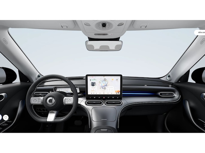 Druk het gaspedaal in en voel de fenomenale kracht van de elektromotor. In een elektrische auto rijdt u tegelijk dynamisch en ontspannen. Ervaar de kracht en stilte van de elektromotor tijdens het rijden. Dit is een splinternieuwe auto, die nu uit voorraad leverbaar is. Van binnen is deze smart #1 mooi uitgevoerd met een classy lederen interieur. Lekker hoor, die verwarmbare voorstoelen. Helemaal op koude dagen. De achterklep opent automatisch met een druk op de knop. Handig als u met volle handen staat. Het glazen panoramadak laat meer licht binnen in het interieur en zorgt voor een magnifiek uitzicht naar buiten. Wind, sneeuw, hagel, regen... allemaal vergeten als u het verwarmd stuurwiel in handen heeft. Perfect zicht bij nacht en slecht weer? Dat leveren de koplampen met matrix LED-verlichting. Bij de zeer complete uitrusting van deze auto behoren ook 19 inch lichtmetalen velgen, trailer assistent, extra getint glas, in delen neerklapbare achterbank, LED-achterlichten en verstelbare lendensteunen.