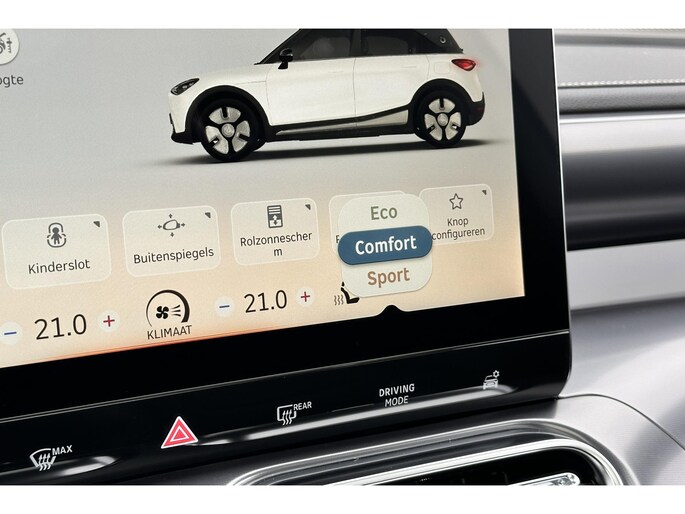 Duurzame mobiliteit is niet langer een ongrijpbare droom. smart maakt het waar met de innovatieve elektrische #1. Een elektrische auto is echt niet meer alleen voor korte ritjes. Het rijbereik van deze auto biedt voldoende ruimte voor jouw dagelijkse ritten. Daardoor kan het opladen vaak 's nachts gebeuren. In de verwarmbare voorstoelen zitten is elke keer een welkom gevoel. De elektrisch bedienbare achterklep opent met een druk op de knop. In weer en wind een cabriosensatie? Dat kan met het riante glazen panoramadak. Het verwarmbare stuurwiel is een teken van ultieme luxe. Deze voorziening is een topklasse auto waardig. Natuurlijk behoren 19 inch lichtmetalen velgen, LED koplampen, trailer assistent, aluminium dakrailing, elektrisch inklapbare buitenspiegels en extra getint glas ook tot de uitrusting van deze complete auto.