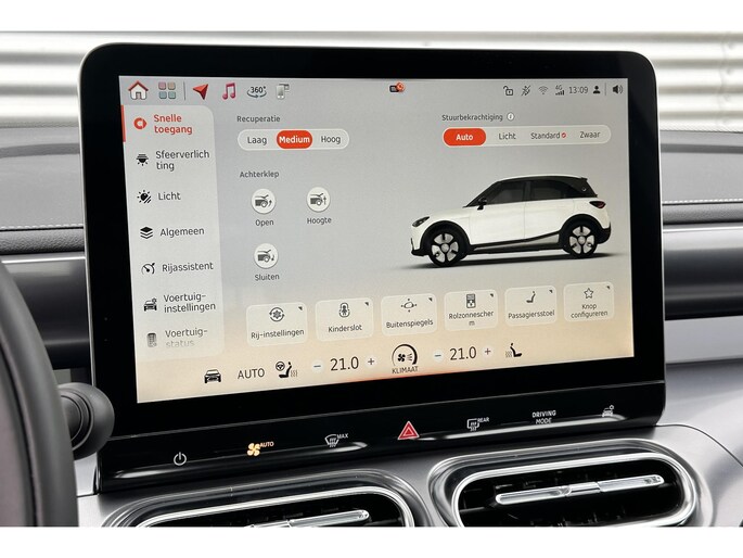 In de smart #1 heeft jouw veiligheid en die van jouw omgeving prioriteit. Belangrijk voor jouw veiligheid en die van jouw passagiers is de verkeersbord-detectie in deze auto. Het Lane-keeping systeem zorgt voor een automatisch constante positie binnen de rijstrook. Afdwalen is uitgesloten. Het forward collision warning-systeem waarschuwt indien een botsing dreigt met een voorliggend of tegemoetkomend voertuig. Dankzij veiligheidsvoorzieningen als dodehoekdetectie, hill hold functie, vermoeidheidsherkenning, autonoom remsysteem en bandenspanningcontrolesysteem, ben je steeds veilig onderweg.