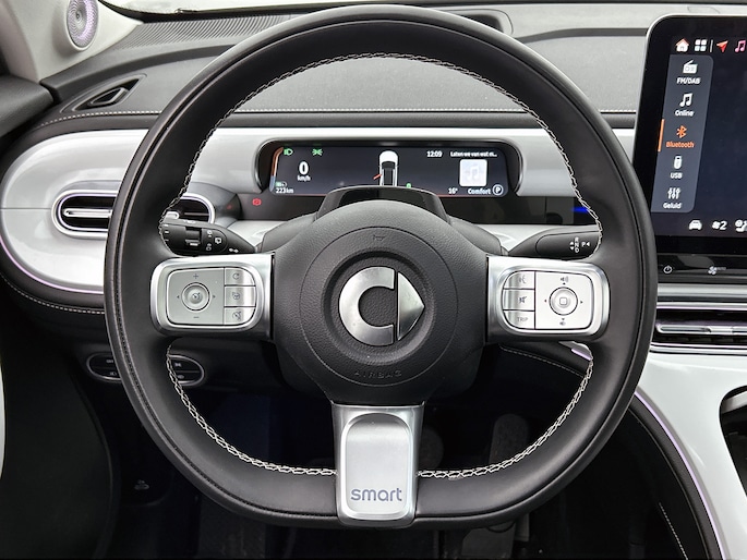 Elektronische veiligheidsvoorzieningen helpen jou onderweg om de situatie op de weg te beoordelen. Deze systemen waarschuwen je als er een riskante situatie ontstaat, en kunnen in bepaalde gevallen ook zelf ingrijpen. Blik permanent op de weg en toch belangrijke functies in beeld? De head-up display projecteert rij-informatie op de voorruit! Een belangrijke bijdrage aan de veiligheid onderweg levert de verkeersbord-detectie in deze Smart. Voorzien van het Lane-keeping systeem. Ofwel: blijf automatisch in je baan. Verder is deze auto uitgerust met dodehoekdetectie, forward collision warning system, hill hold functie, vermoeidheidsherkenning, autonoom remsysteem en bandenspanningcontrolesysteem.