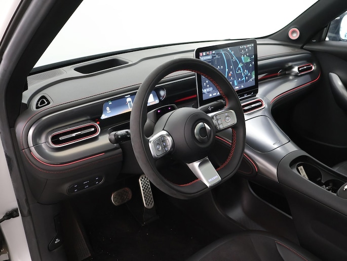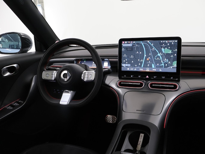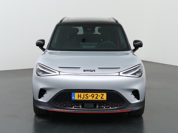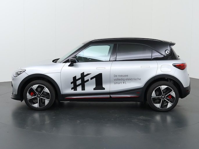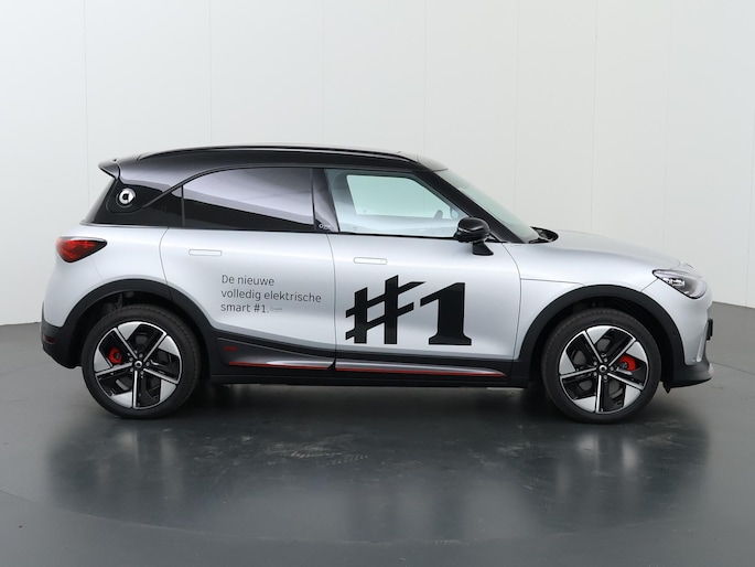 U voelt de onbeperkte kracht van elektrische aandrijving, elke keer als u op weg gaat met deze Smart #1 Brabus. De techniek van deze auto is radicaal anders dan u gewend bent. U rijdt zacht zoemend naar uw bestemming, de actieradius van de accu's is ruimschoots voldoende voor de meeste dagelijkse ritten. Deze auto uit heeft nauwelijks gereden, met een tellerstand van slechts 10 kilometer. Lekker hoor, die verwarmbare voorstoelen. Helemaal op koude dagen. De elektrische achterklep opent met een druk op de knop, zodat u gemakkelijk toegang heeft tot de bagageruimte. Door het glazen panoramadak heeft u een weidse zichthoek en geniet u van licht en een gevoel van ruimte. Als u de stuurverwarming inschakelt, geniet u van weldadige warmte voor uw handen en vingers. De koplampen zijn voorzien van de allernieuwste lichttechnologie: matrix LED-verlichting. Bij de rijke uitrusting horen ook 19 inch lichtmetalen velgen, sportinterieur, trailer assistent, aluminium dakrailing, elektrisch inklapbare buitenspiegels en extra getint glas.
