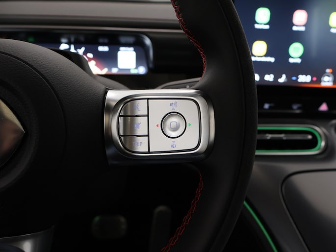 Geavanceerde veiligheidssystemen kijken tijdens elke rit met u mee en schatten continu de risico's in. U hoeft onderweg uw hoofd nooit te draaien of uw blik te verplaatsen om dashboard-info af te lezen. De head-up display projecteert alles op de voorruit. U kunt rijden als een jachtpiloot. In het instrumentarium laat de verkeersborddetectie de actuele verkeersborden zien. Het Lane-keeping systeem doet precies wat nodig is: waarschuwen en corrigeren bij onbedoelde overschrijding van de rijstrooklijnen. Bovenop deze veiligheidsfeatures heeft deze Smart bovendien dodehoekdetectie, forward collision warning system, hill hold functie, vermoeidheidsherkenning en bandenspanningcontrolesysteem.