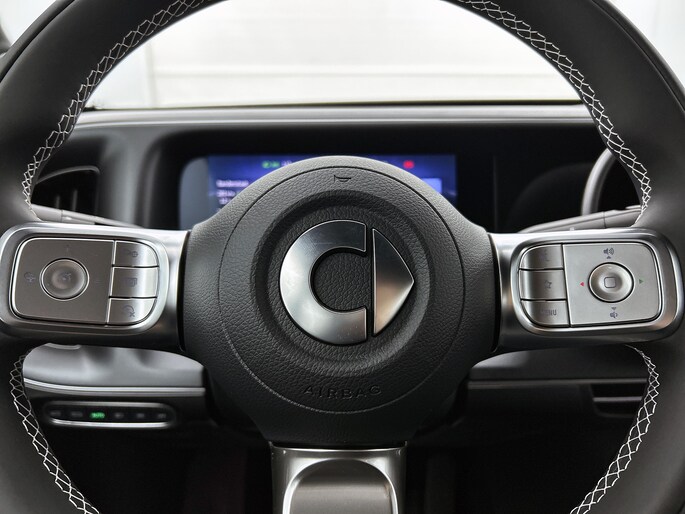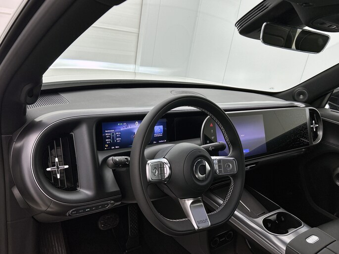 Het digitale dashboard in deze auto maakt personalisatie van jouw cockpitinterface mogelijk. Met de 360 graden camera kun je elk detail rond de auto zien, waardoor mogelijke schade door verkeerd inschatten van afstanden vermeden wordt. Met adaptive cruise control houdt de auto zelfstandig afstand tot jouw voorligger. Een veiligheidsverhogende optie waarmee je comfortabel onderweg bent. Na een lange werkdag in de file: daar zit niemand op te wachten. Gelukkig helpt de file assistent een handje. Het radarsysteem meet de ruimte tot de voorligger en bewaakt de juiste afstand. Stilstaan? Dan remt en stopt de auto vanzelf. Slimme spraakbesturing herkent gesproken opdrachten en voert ze uit. De Smart is standaard voorzien van: connected drive services, navigatiesysteem, WIFI-hotspot, achteropkomend verkeer waarschuwing, electronic climate control en draadloos opladen.