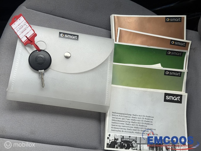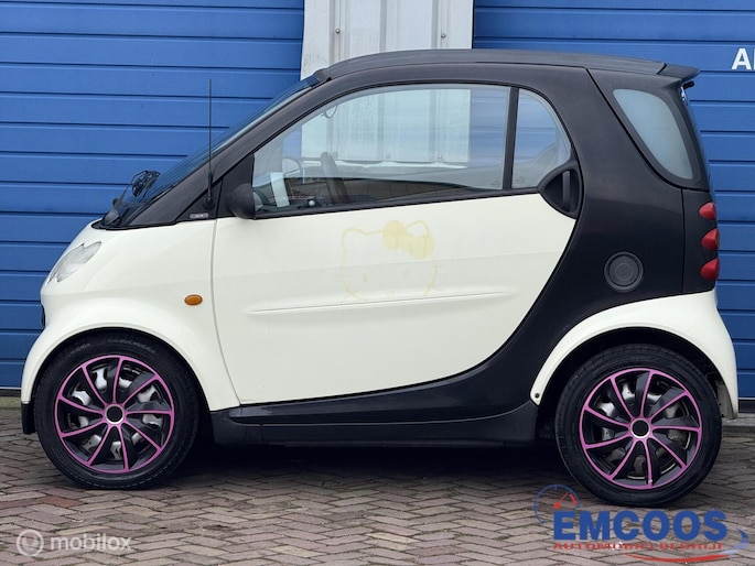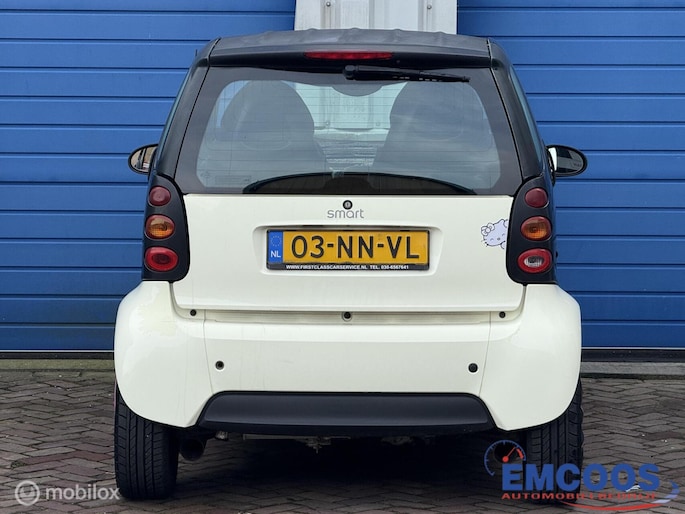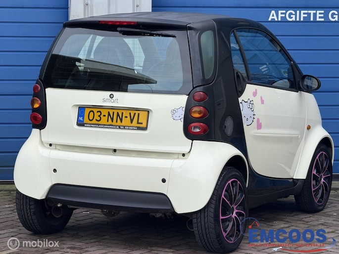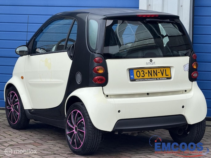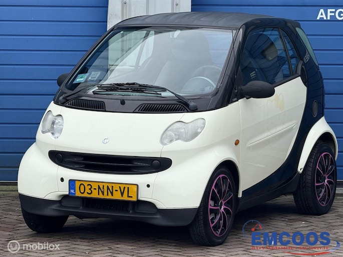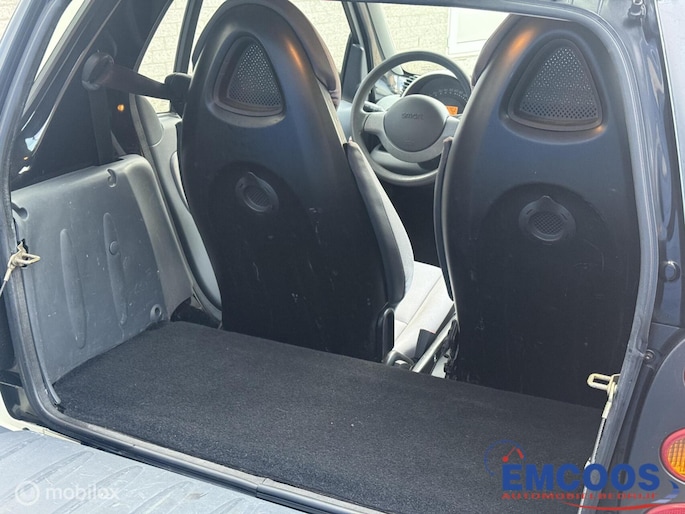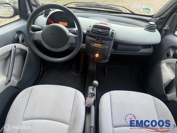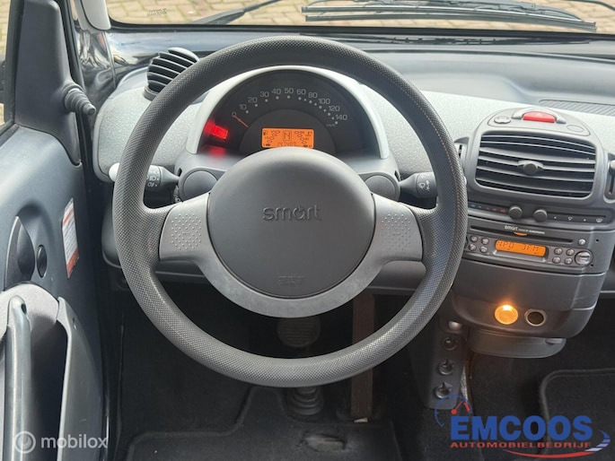 Deze Smart City-Coupé uit 2004 is een compacte 3-deurs hatchback met achterwielaandrijving.