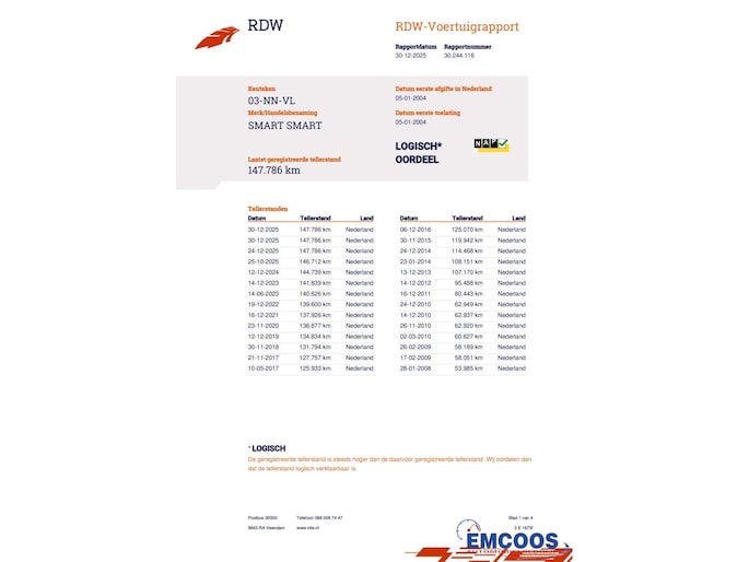 De huidige tellerstand bedraagt 147.786 kilometer.