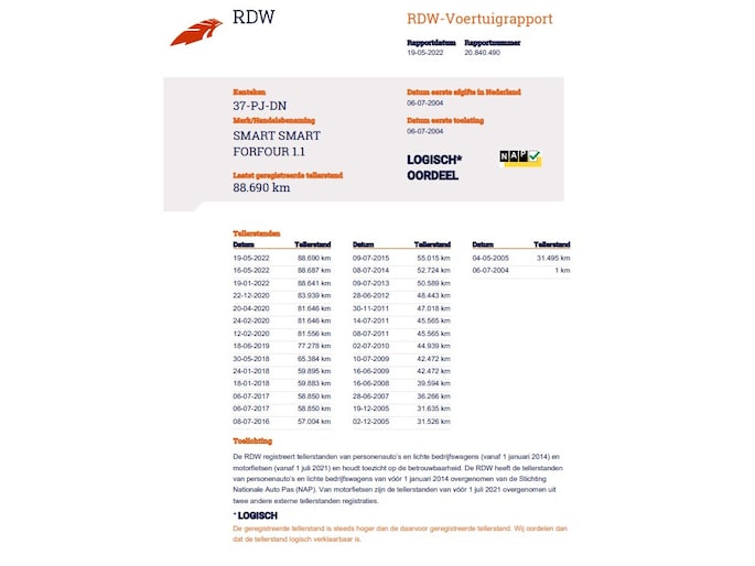 Kilometerstand gecontroleerd