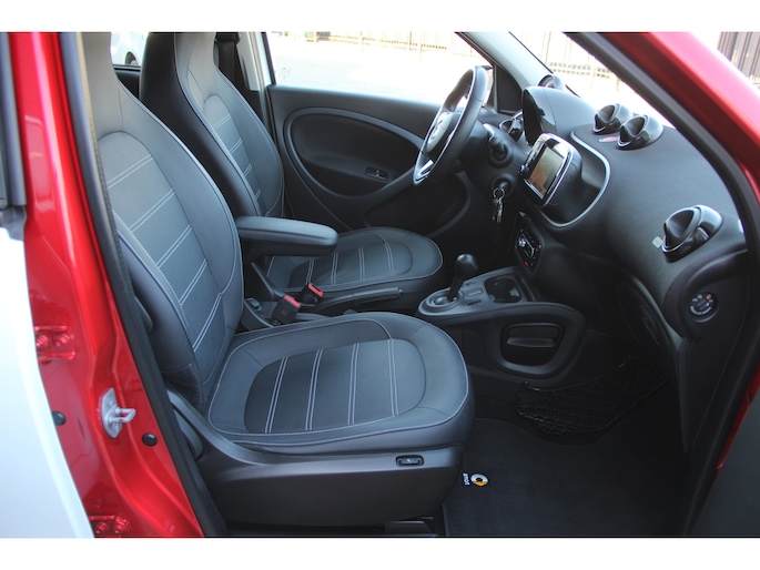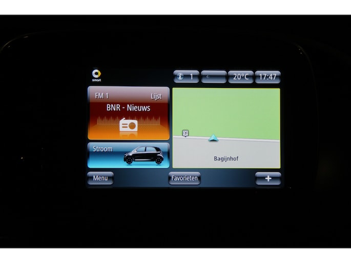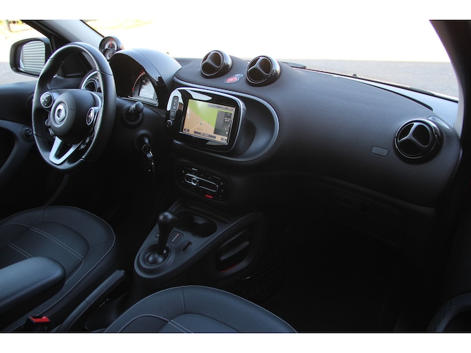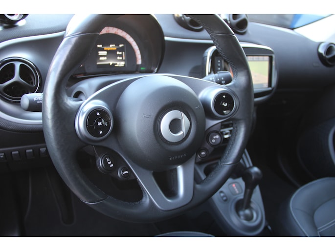 Het navigatiesysteem en het audio-installatiesysteem (met DAB-ontvangst!) bedient u met knoppen op het stuur. Automatische airconditioning verwarmt of koelt het interieur met een druk op de knop. Een plekje vinden in de binnenstad is één, inparkeren is twee. Voor dat laatste heeft deze Smart forfour prima parkeersensoren die u een handje helpen. De cruise control betekent gemak, comfort en zuinig rijden. De Smart is standaard voorzien van: buitentemperatuurmeter, lederen stuur, isofix-aansluiting, centrale deurvergrendeling met afstandsbediening en boordcomputer.