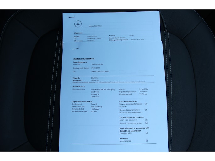 Deze Smart forfour is innovatie op zijn best. Hij is ontworpen als een unieke combinatie van rijplezier en zorg voor het milieu. Deze dealeronderhouden auto heeft 77731 kilometer gelopen, het bouwjaar is 2019. Nooit meer naar de pomp! De elektromotor opladen en rijden maar! De stijlvolle, luxe uitstraling is inbegrepen in de vorm van leren bekleding. Lekker hoor, die verwarmbare voorstoelen. Helemaal op koude dagen. Tot de uitrusting behoren ook 15 inch lichtmetalen velgen, getint glas, neerklapbare achterbank en snelheidsafhankelijke stuurbekrachtiging.