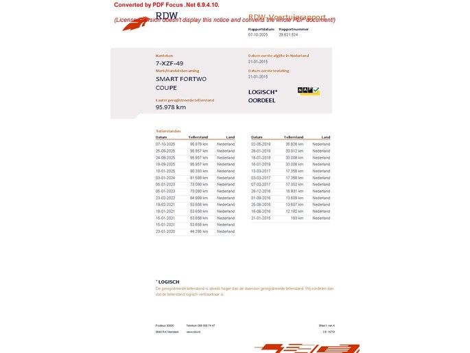 Kilometerstand gecontroleerd