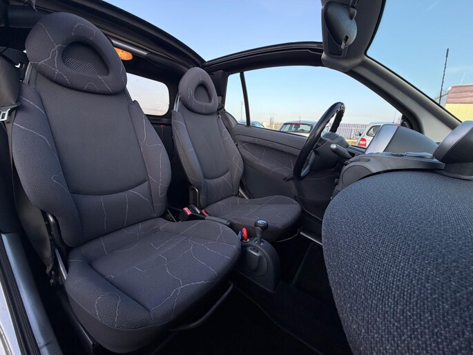 Door zijn lichte gewicht van slechts 815 kg en een pittige 45 kW motor biedt deze Smart verrassend rijplezier. De automatische transmissie zorgt voor comfort en gemak, terwijl de topsnelheid van 135 km/u laat zien dat klein ook krachtig kan zijn. Het cabinegevoel wordt versterkt door de elektrisch bedienbare softtop, ideaal om je direct aan te passen aan het weer.