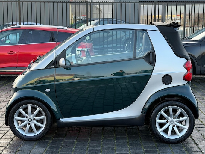 Verwelkom de ultieme stadsauto in cabrio-uitvoering: de Smart Fortwo Cabrio 0.7 Pure! Met zijn elegante grijze exterieur en frisse groene accenten is dit een echte blikvanger. Exclusief ontworpen om compact, stijlvol en praktisch te zijn. Perfect voor stedelijke avonturen zonder compromissen.