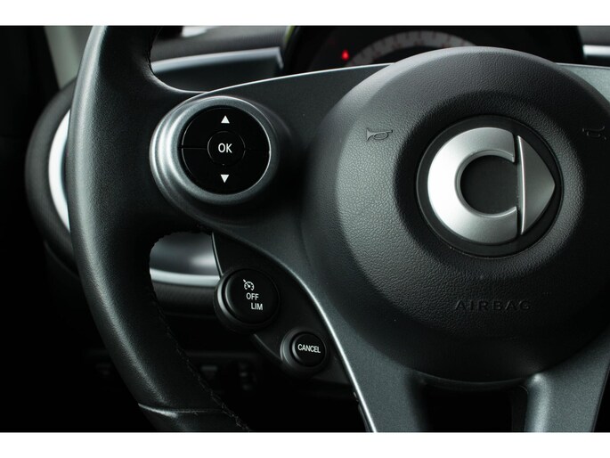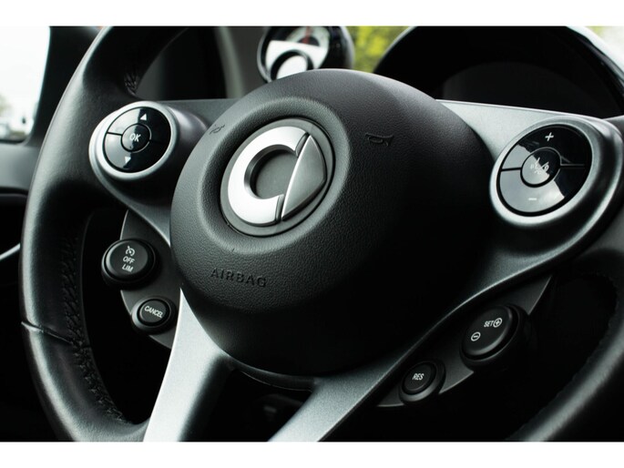 Parkeer en kijk niet om! De achteruitrijcamera doet dat voor u. Deze Smart is voorzien van knoppen op het stuur om het full map navigatiesysteem en het audiosysteem met DAB-ontvangst te bedienen. De achteropkomend verkeer waarschuwing geeft een signaal als degene achter u te dicht op u zit. Ook handig en veilig bij het wisselen van rijbaan. U verwacht natuurlijk automatische airconditioning in deze auto, en die is er dan ook. De automatisch inschakelbare verlichting en regensensor zorgen dat onderweg automatisch de verlichting en de ruitenwissers worden ingeschakeld. Daarmee nemen ze u veel werk uit handen. Natuurlijk behoren lederen sportstuur, cruise control, automatisch dimmende binnenspiegel, centrale deurvergrendeling met afstandsbediening, boordcomputer en lederen versnellingspook ook tot de uitrusting van deze complete auto.