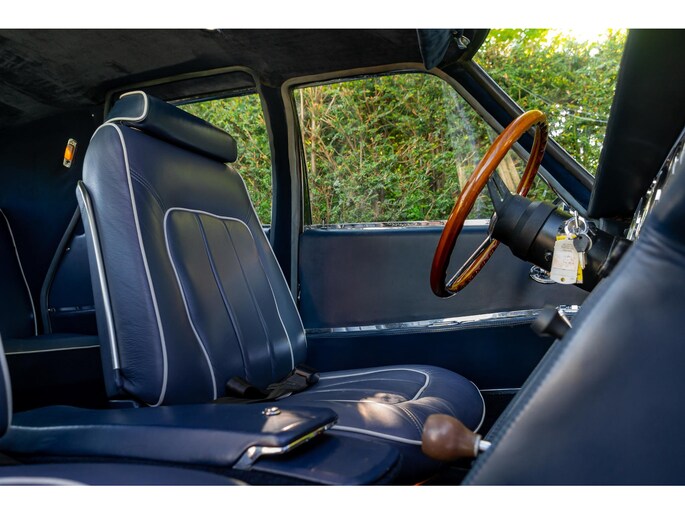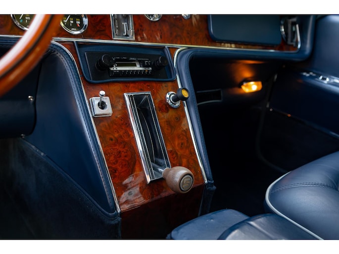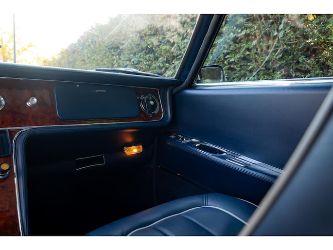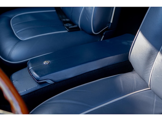 Het interieur is al net zo verfijnd: blauw lederen stoelen met grijze biezen, een donkerblauwe suède hemel en rijkelijk generfde houten bekleding geven het interieur een indrukwekkende maar elegante uitstraling.