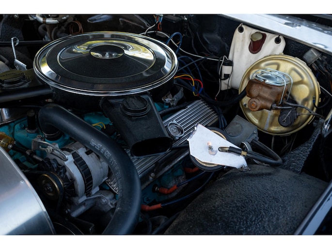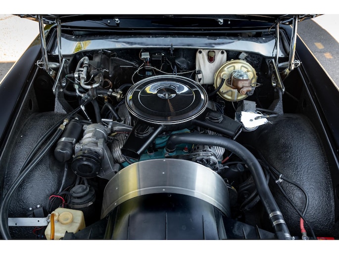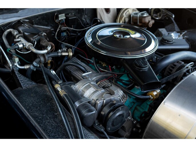 Mechanisch is de Duplex in uitstekende staat. De Pontiac V8 is netjes afgewerkt in Pontiac Blue met geribbelde lichtmetalen kleppendeksels en een verchroomd luchtfilter.