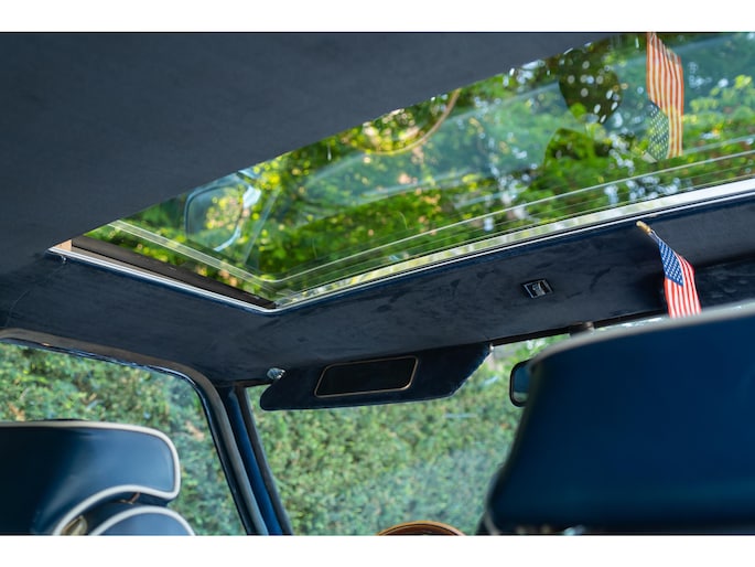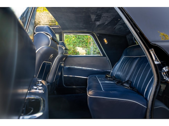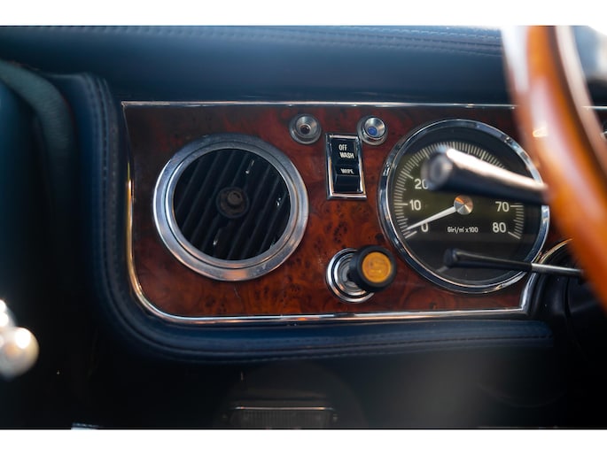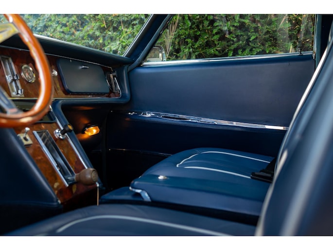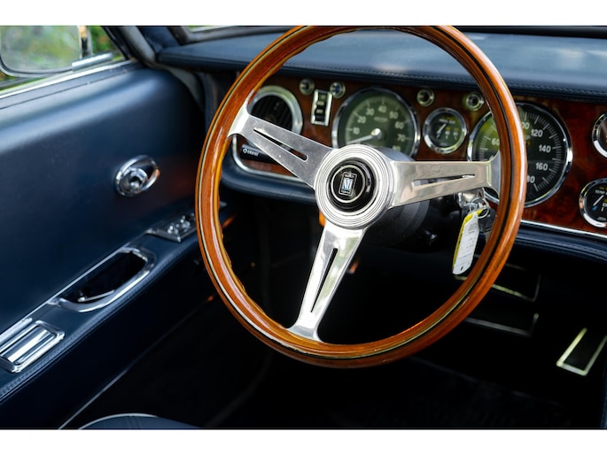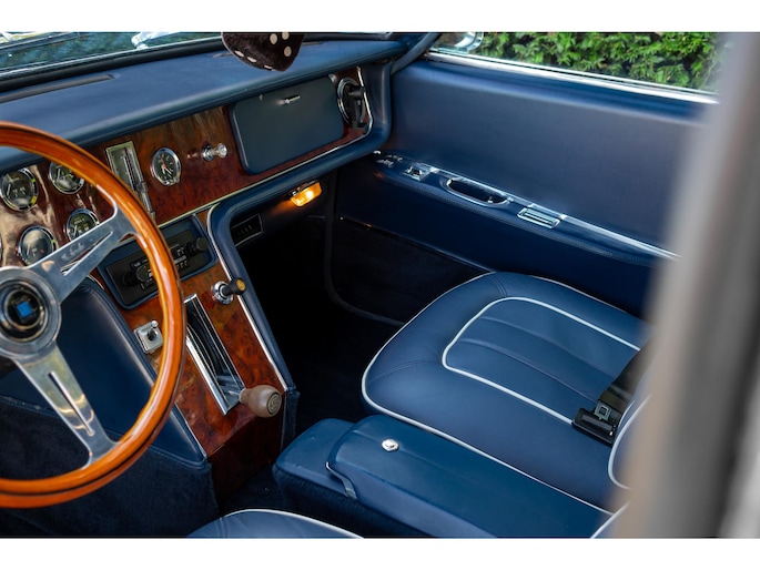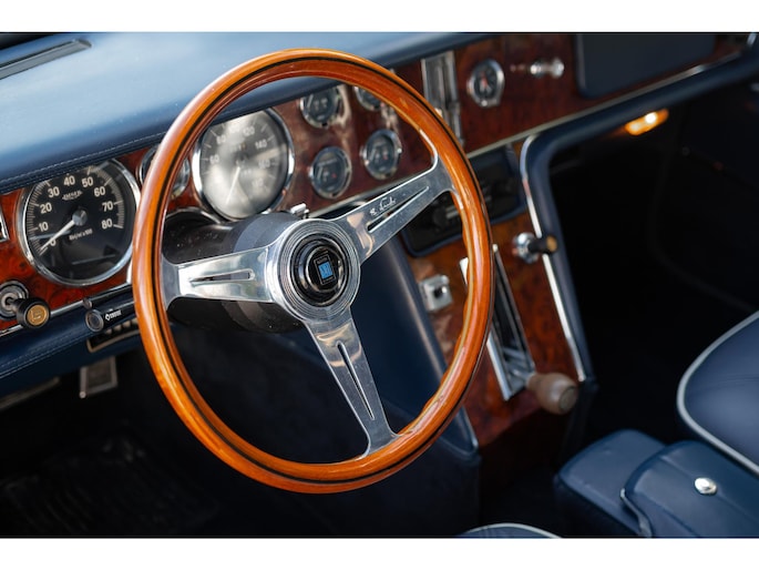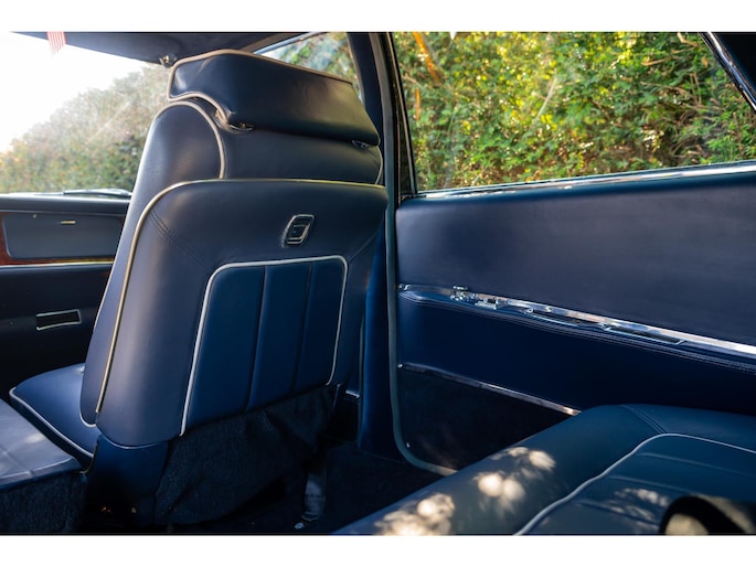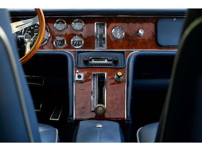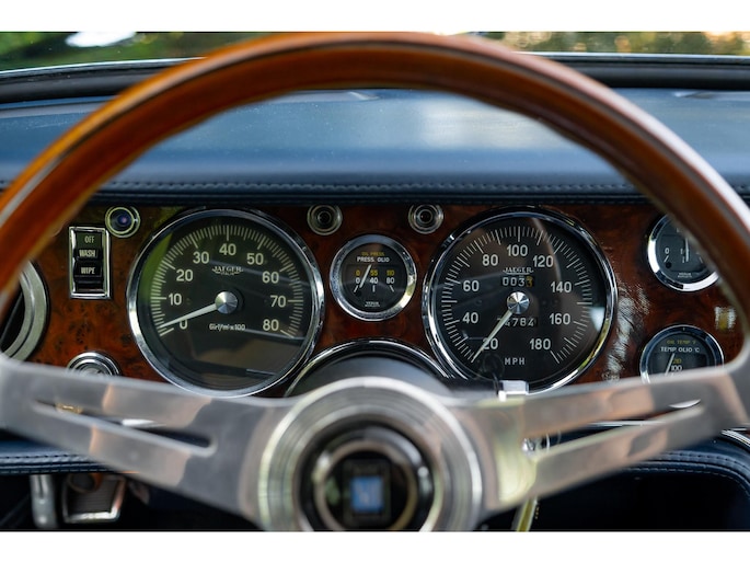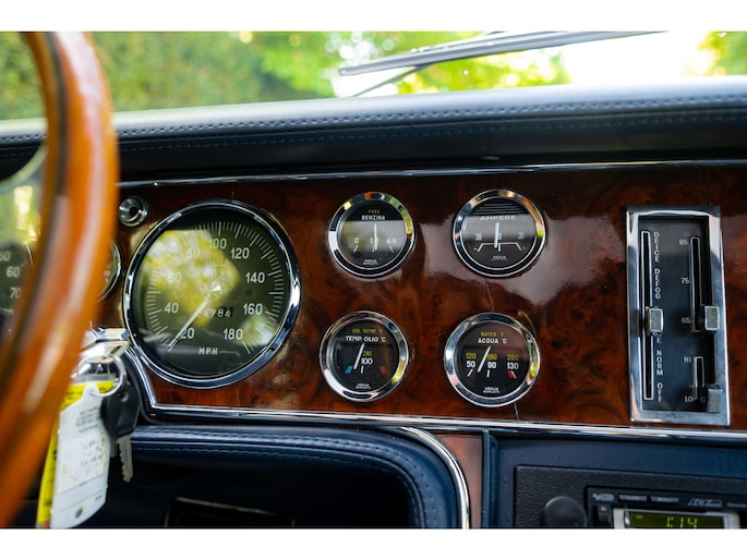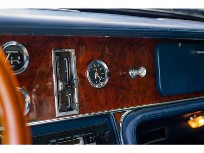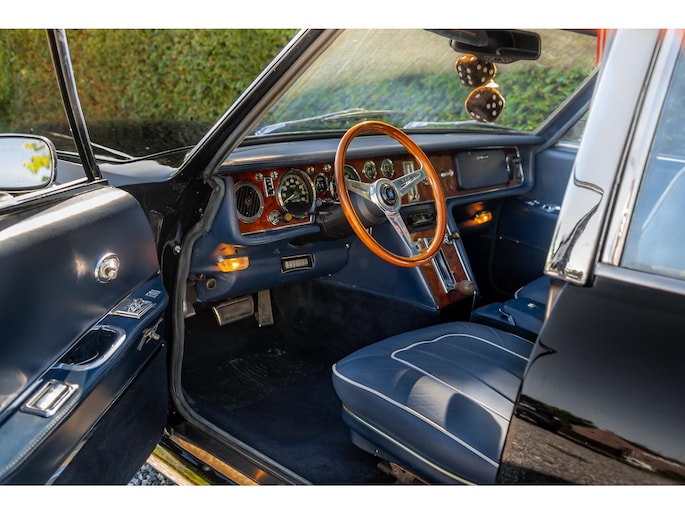 Een houten Nardi-stuurwiel staat tegenover een complete serie Jaeger- en Veglia-meters, als verwijzing naar de Europese afkomst van de auto. De versnellingspook, die bijna verticaal is gemonteerd, voegt een vleugje excentrieke charme toe die het luxueuze karakter van de cabine aanvult.