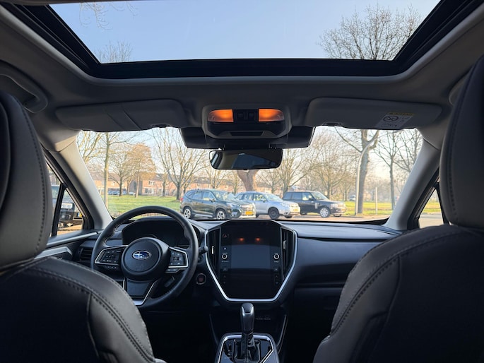 Alle technologie in de Subaru Crosstrek is er op gericht om uw rit veilig en gemakkelijk te laten verlopen. Dit mooie, dealeronderhouden exemplaar uit 2024 heeft 18146 kilometer op de teller staan. De aandrijving van deze Subaru wordt verzorgd door een viercilinder motor en een continue automatische transmissie. Met behulp van de vierwielaandrijving kan deze auto met elk soort weer en wegdek overweg. Deze auto verkoopt zichzelf. Ga maar na: een elektrisch bediend glazen panorama dak én een lederen interieur. Wat valt er dan nog te wensen? Dankzij de stoelverwarming heeft u in deze auto nooit meer last van een koude rug of koude benen. Bij de uitrusting van deze auto horen onder meer 18 inch lichtmetalen velgen, elektrische handrem, dakspoiler, donker getint glas achter en in delen neerklapbare achterbank.