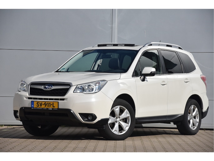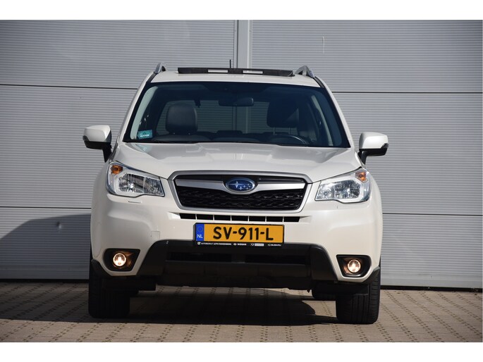 Deze generatie Forester kwam in 2013 en was toen een auto die heel goed verkocht werd. De meesten waaren echter de Luxury en Luxury Plus uitvoeringen. Daarom is het verfrissend om eens een hele mooie "Alles-erop-en-eraan" Executive in te ruilen. Dit is een oude bekende van ons want wij kochten hem voor het eerst in in 2018. We hebben de Forester eerst toen zelf in gebruik gehad en vervolgens hier op Erica verkocht in het Dorp. Nou hebben wij hem van deze klant weer ingeruild want hij zag een mooie XV in de rij dus is de SV911L weer bij ons. Hij is heel goed onderhouden, ziet er heel goed uit en zit gewoon lekker in de spullen. Als het een lekkere zonnige dag is kan je heerlijk genieten van het giga schuifdak, en dingen als achteruitrijcamera, lederen bekleding elektrische klep, elektrisch stoelverstelling en keyless entry zitten er op en zijn gewoon super handig.