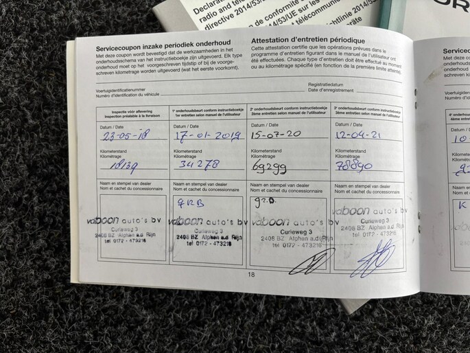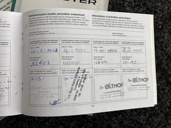 Onderhoudsboekjes: Aanwezig