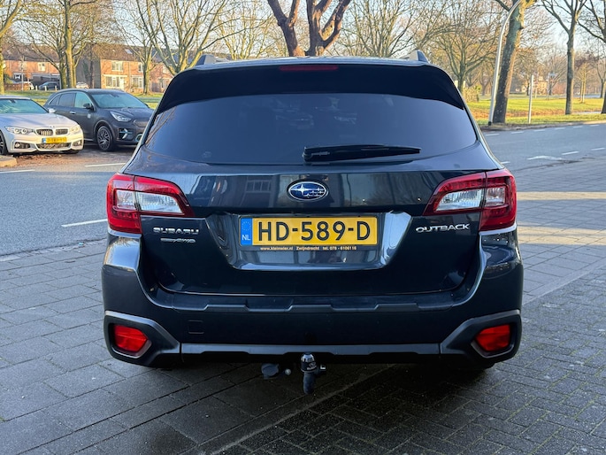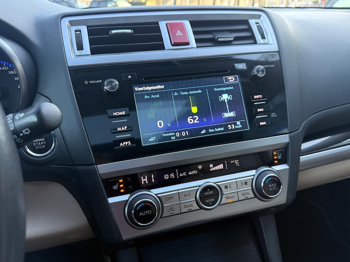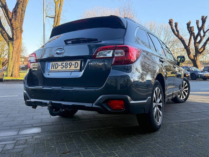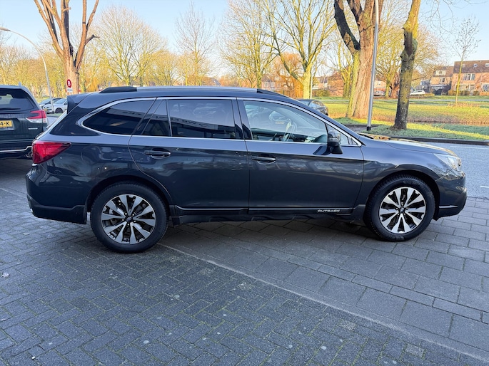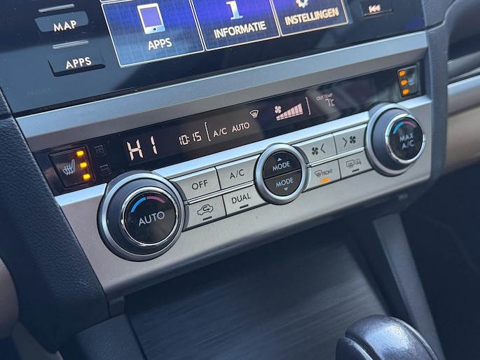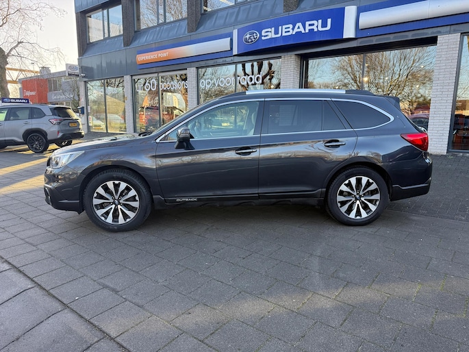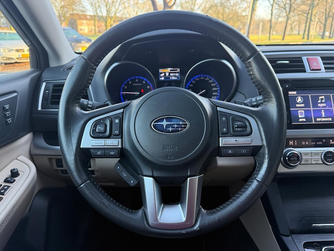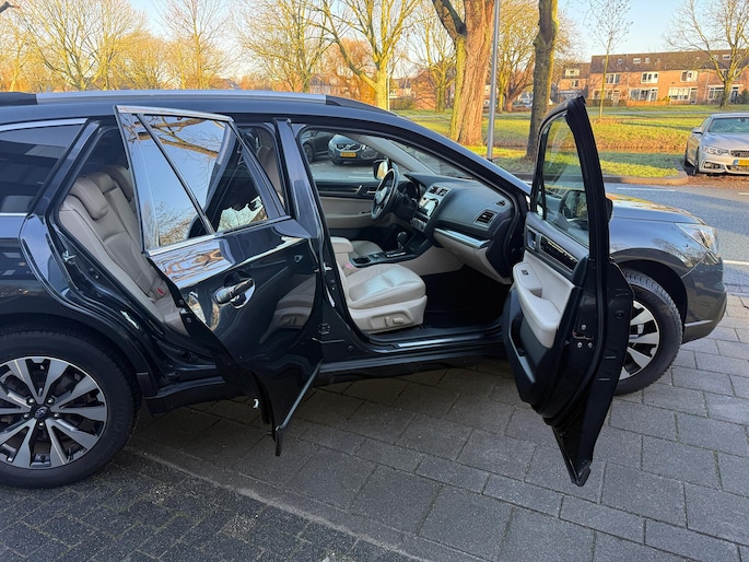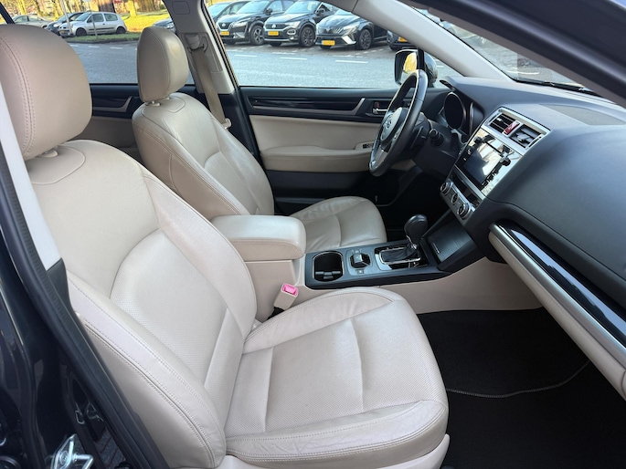 Bij het ontwerpen van de SUBARU Outback stonden uw comfort en uw veiligheid centraal. Deze Outback is van het bouwjaar 2015, hij heeft 186857 kilometer gelopen. Hij heeft een benzinemotor en een continue automatische transmissie. Solide op nat asfalt en regenklinkers, maar net zo onverschrokken op de onverharde weg: de vierwielaandrijving trekt je overal doorheen. Het lederen interieur geeft een puur luxegevoel. En ook aan optimaal gemak is gedacht: een elektrisch bediende glazen panorama dak en de elektrisch bedienbare achterklep. Is dat niet compleet? Er is stoelverwarming aanwezig in deze auto. Bij de uitrusting van deze SUBARU horen onder meer 18 inch lichtmetalen velgen, LED koplampen met sproeiers, donker getint glas achter en in delen neerklapbare achterbank.