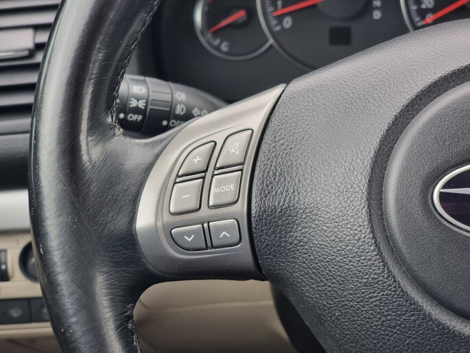 Qua uitrusting is deze Subaru rijk uitgerust: volledig lederen bekleding, verwarmde voorstoelen, cruise control, climate control en een audiosysteem met cd-wisselaar. De donkergrijs metallic lak, 17 inch lichtmetalen velgen en dakrails maken het uiterlijk stoer en tijdloos. Binnenin profiteer je van veel ruimte, een hoge zit en het comfort dat je van Subaru mag verwachten.