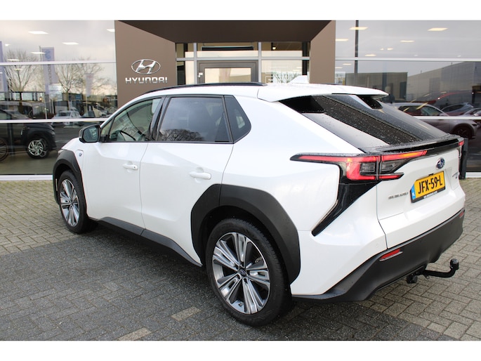 Niet alleen de techniek van deze elektrische Subaru Solterra is vernieuwend. Ook het ontwerp onderscheidt zich duidelijk van de massa. Eindelijk elektrisch rijden? Deze auto is voorzien van een elektromotor. Dus stil, schoon én snel! De krachtige motor geeft deze Subaru uitstekende prestaties. Het lederen interieur ademt luxe, en het zit uiteraard fantastisch. Deze auto levert de ultieme rijervaring met eersteklas functies zoals stoelverwarming, een verwarmbare achterbank en een verwarmbaar stuur. De bagageruimte is toegankelijk via een comfortverhogende elektrische achterklep. Maximaal daglicht, royaal uitzicht: het glazen panoramadak zorgt ervoor! Ook is de auto voorzien van: 20 inch lichtmetalen velgen, LED koplampen, warmtewerend glas, dakspoiler, in delen neerklapbare achterbank en LED-achterlichten. Het digitale dashboard ondersteunt u voortdurend met actuele, bruikbare informatie. Of u nu achteruit rijdt, parkeert of een smalle straat inslaat, de 360 graden camera op deze auto, mogelijk gemaakt door vier camera's, biedt een perfect beeld van uw omgeving. Adaptive cruise control houdt de ingestelde snelheid vast en houdt automatisch afstand tot uw voorligger. Uw smartphone wordt een dashboard, met alle functies in beeld. Dankzij Connected Services en de speciale app. Rijplezier en luisterplezier gaan hand in hand dankzij het high performance audiosysteem. Met navigatiesysteem, achteropkomend verkeer waarschuwing, kruisend verkeer detectie, electronic climate control, draadloos opladen en regensensor is deze Subaru helemaal compleet. In de Subaru Solterra heeft uw veiligheid en die van uw omgeving prioriteit. Een belangrijke bijdrage aan de veiligheid onderweg levert de verkeersbord-detectie. Deze Subaru Solterra is ook behulpzaam als het gaat om een rechte koers. Het Lane-keeping systeem signaleert en corrigeert als u onbedoeld de rijstrooklijnen dreigt te overschrijden. Het forward collision warning-systeem berekent via een sensor de afstand tot het verkeer vóór u en komt in actie als er gevaar bestaat van een botsing. De auto is ook uitgerust met dodehoekdetectie, hill hold functie, vermoeidheidsherkenning en frontale botsbescherming. Wilt u een proefrit maken met deze elektrische auto? Maak dan nu een afspraak.
