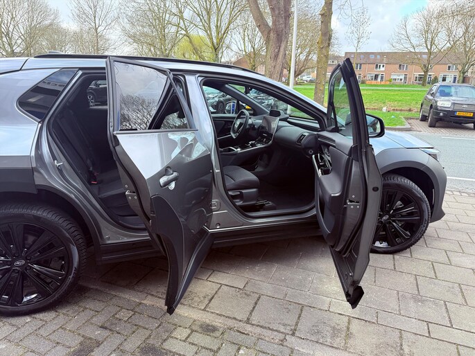 Duurzaam en dynamisch, de Subaru Solterra verenigt deze twee uitersten in zich. Dit is een auto uit 2025, er staat 10 kilometer op de teller. Power, stilte en nul procent uitlaatgas krijgt u met de elektromotor. Deze auto staat extra stevig op de wielen onder alle omstandigheden dankzij de vierwielaandrijving. De elektrisch bedienbare achterklep opent met een druk op de knop. Ook elektrisch verstelbare bestuurdersstoel, 20 inch lichtmetalen velgen met all season banden, dakspoiler en in delen neerklapbare achterbank zijn aan boord.