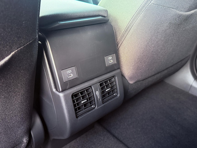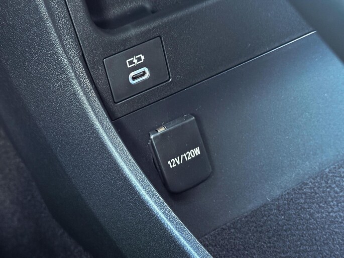 - USB-A poort en 12 V poort in middenconsole
