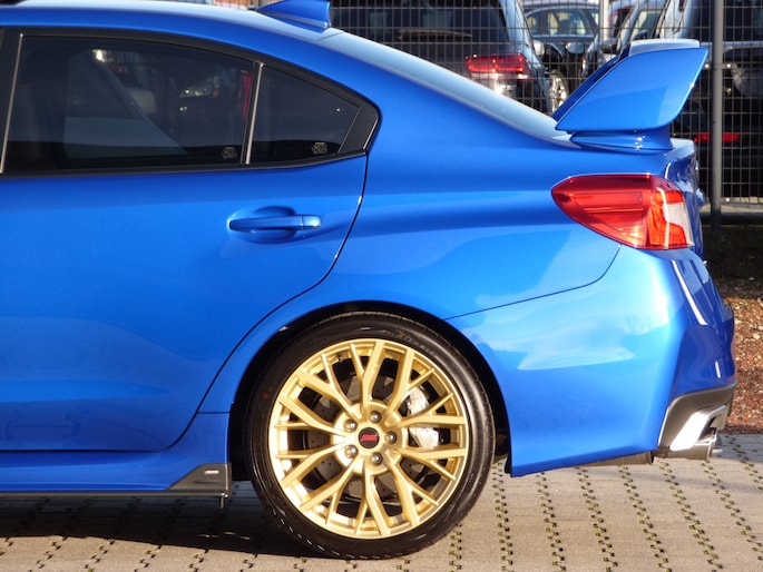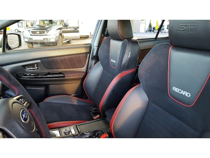 There it is! What a unique beauty... this limited WRX STi Final Edition in by far the most desirable color World Rally Blue Pearl, 19” Final Edition, forged OE BBS "gold colored" rims, large gray OE Brembo brakes/drilled OE brake discs, upgraded OE shock absorbers and an OE spoiler package. It has only driven 16,144 km. This Sub is truly as new (A1 top condition). A completely black interior with black/red leather/Alcantara with red contrasting stitching, Recaro sport seats and an Alcantara sport steering wheel. And of course, not to forget its uniquely numbered badge in the center console. In short, a unique icon, a thoroughbred sports car with unparalleled driving characteristics.