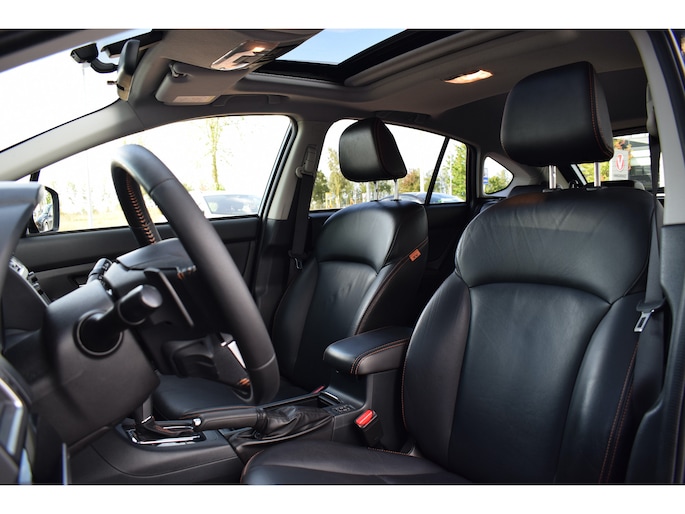 Het doordachte ontwerp van de Subaru XV maakt hem tot een comfortabele en veelzijdige auto voor het hele gezin. Met zijn benzinemotor en automatische transmissie is dit een prima auto voor nog vele kilometers. Niet alleen de stoelen, maar een compleet lederen interieur. Dat krijgt u er allemaal bij, inclusief het elektrisch bediende glazen panorama dak. Stoelverwarming maakt het leven in deze auto aangenaam op koude en winterse dagen. Xenonverlichting zorgt in het donker voor beter zicht. Bij de rijke uitrusting horen ook 17 inch lichtmetalen velgen, dakspoiler, donker getint glas achter, in delen neerklapbare achterbank, LED-achterlichten en snelheidsafhankelijke stuurbekrachtiging.