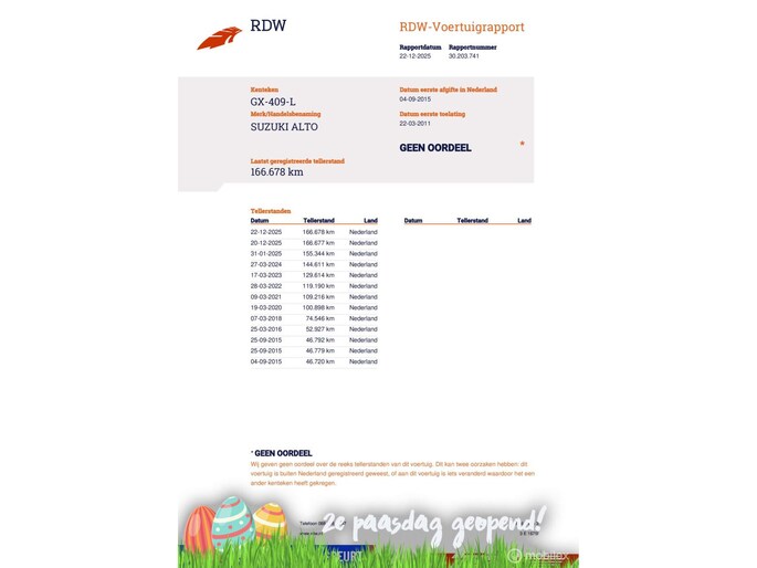 - 12 maanden Bovag garantie op motor en versnellingsbak of 15.000 km, (reparatie en onderhoud werkzaamheden uit te voeren bij Vakgarage Verheul)