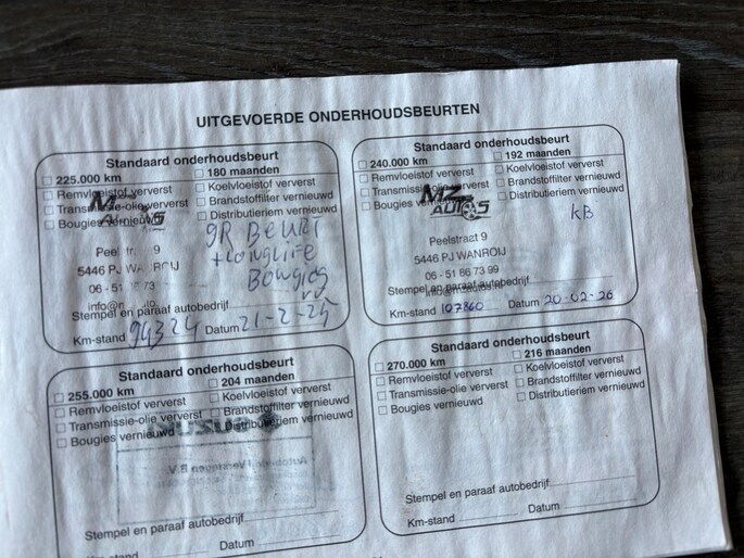 Onderhoudsboekjes: Aanwezig
