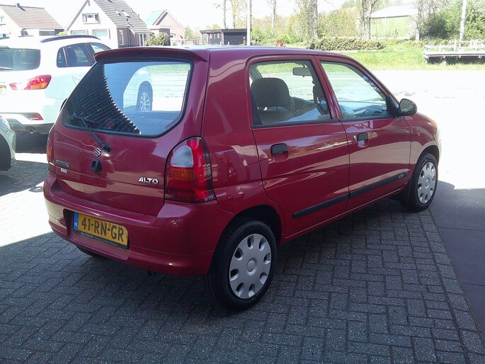 Klein zouden we 'm niet willen noemen, deze Suzuki Alto. Compact zeker wel. De totale ruimte is optimaal benut voor comfort en rijplezier. Hij rijdt lekker, deze Suzuki. Pittig ook. In deze auto profiteert u onder andere ook van: getint glas en in delen neerklapbare achterbank.