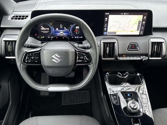 Hij levert uitstekende prestaties en doet dat met zorg voor het milieu. Maar tegelijk is de Suzuki e VITARA ook gewoon een auto die u volop ruimte en comfort biedt. De elektromotor laat u geluidloos over de weg gaan. Wat een verademing, en zoveel power ook nog! Deze gloednieuwe auto is per direct uit onze voorraad leverbaar. Bestuurder en bijrijder krijgen een warm welkom: deze Suzuki e VITARA is voorzien van verwarmbare voorstoelen. Een heerlijk luxe optie van deze auto is het verwarmbare stuurwiel. Tot de voorzieningen van deze auto behoren 18 inch lichtmetalen velgen, LED koplampen, warmtewerend glas, dakspoiler, in delen neerklapbare achterbank en LED-achterlichten.