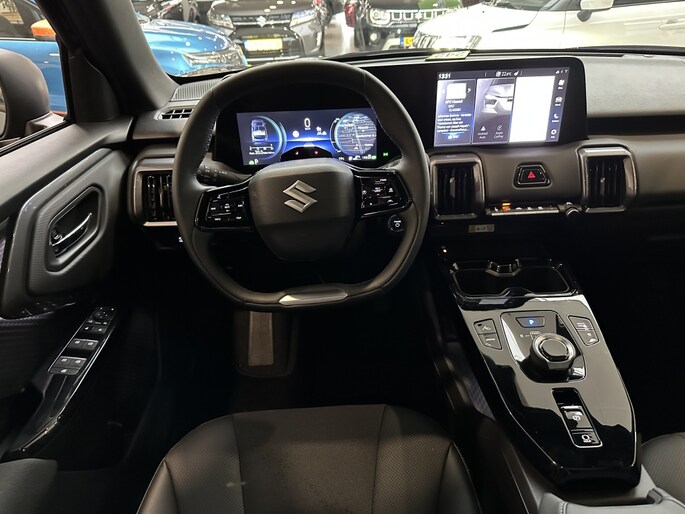 Het interieur van de Suzuki E-VITARA is voorzien van hoogwaardige opties die jouw rijervaring naar een hoger niveau tillen. Zo beschikt de auto over Apple Carplay/Android Auto, waardoor je eenvoudig verbonden blijft met je smartphone. De achteruitrijcamera zorgt ervoor dat parkeren en manoeuvreren een fluitje van een cent worden. De premium audio installatie laat jou genieten van jouw favoriete muziek in topkwaliteit.