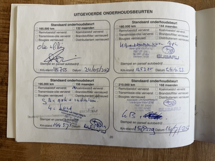 Onderhoudsboekjes: Aanwezig