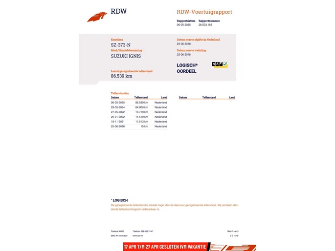 Kilometerstand gecontroleerd