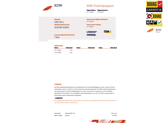 Kilometerstand gecontroleerd