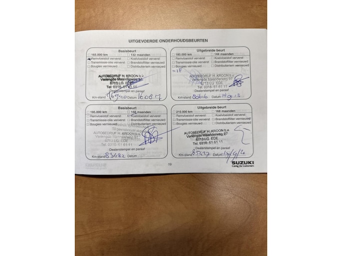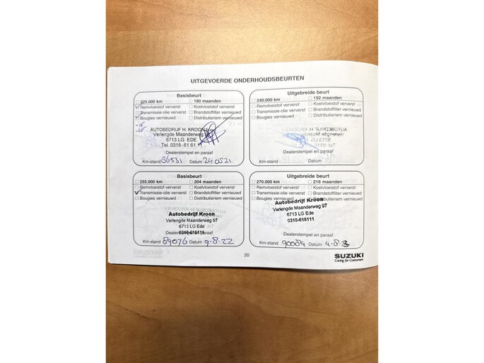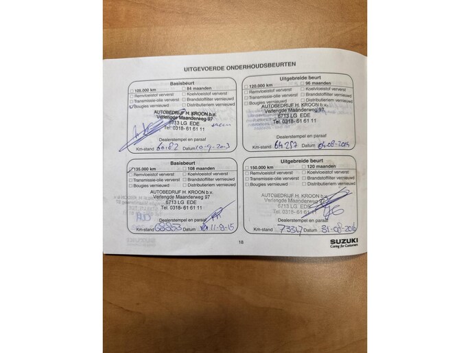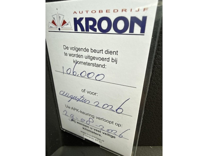 Deze bestaat uit een onderhoudsbeurt volgens fabrieksschema, nieuwe APK en 6 maanden garantie op motor + versnellingsbak (garantie bij een garage naar uw keuze).