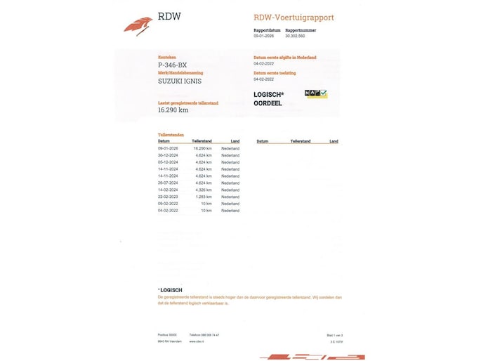 Kilometerstand gecontroleerd