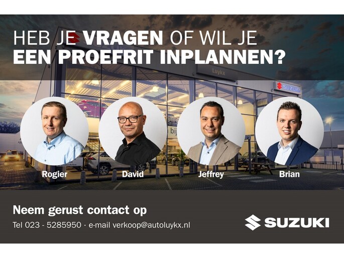 Auto Luykx is een echt familiebedrijf en al 35 jaar Suzuki dealer voor de regio’s Heemstede, Amsterdam, Haarlem en de Haarlemmermeer. Mede dankzij onze transparante manier van zaken doen en persoonlijke aandacht zijn wij een begrip in de regio geworden.