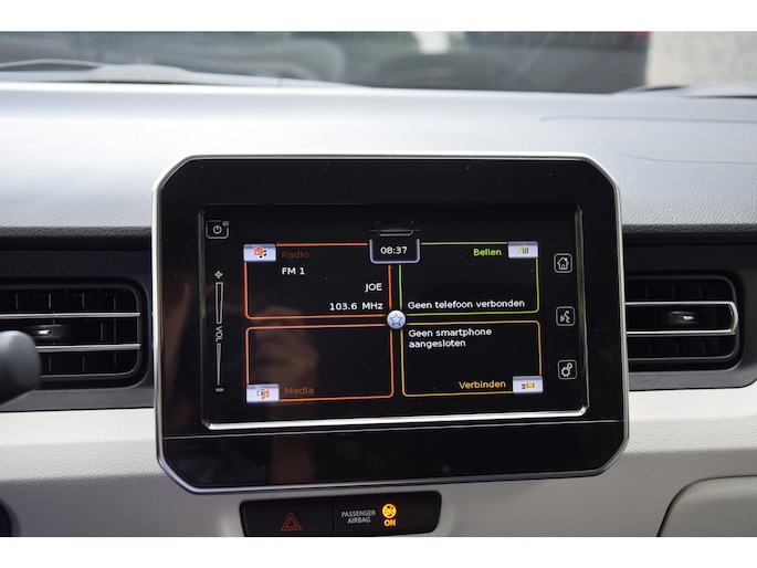 Met de achteruitrijcamera ziet u wat er achter de auto gebeurt. Zo rijdt u moeiteloos achteruit. In deze Ignis vindt u schakelaars op het stuur om het audiosysteem met dab-ontvangst te bedienen. Met één druk op de knop blaast de airconditioning een koele bries door het interieur. De uitrusting van deze Suzuki is met centrale deurvergrendeling met afstandsbediening, boordcomputer en verstelbaar stuur behoorlijk compleet.